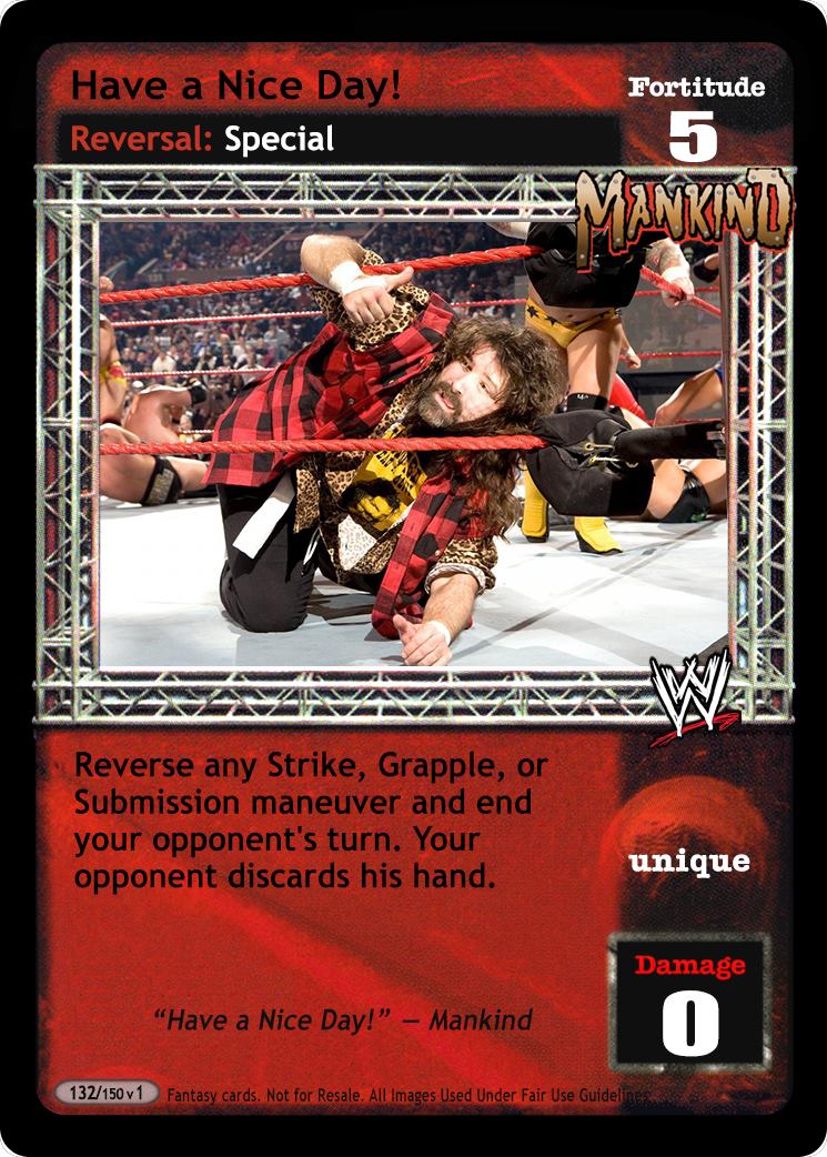 Reverse any Strike, Grapple or Submission maneuver. End your opponent's turn. If played from your hand, opponent discards all cards in his hand.