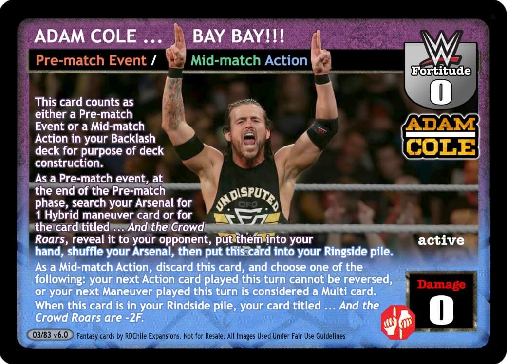 This card counts as either a Pre-match Event or Mid-match Action in your backlash deck for purpose of deck construction. As a pre-match event, at the end of the pre-match phase, search your arsenal for 1 hybrid maneuver card or for the card title “… And the Crowd Roars”, reveal it to your opponent, put it into your hand, and shuffle your arsenal then put this card into your ringside pile. As a mid-match action, discard this card and choose one of the following: your next action played this turn cannot be reversed or your next maneuver played this turn is considered multi. When this card is in your ringside pile, your card title “…And the Crowd Roars” are -2F.