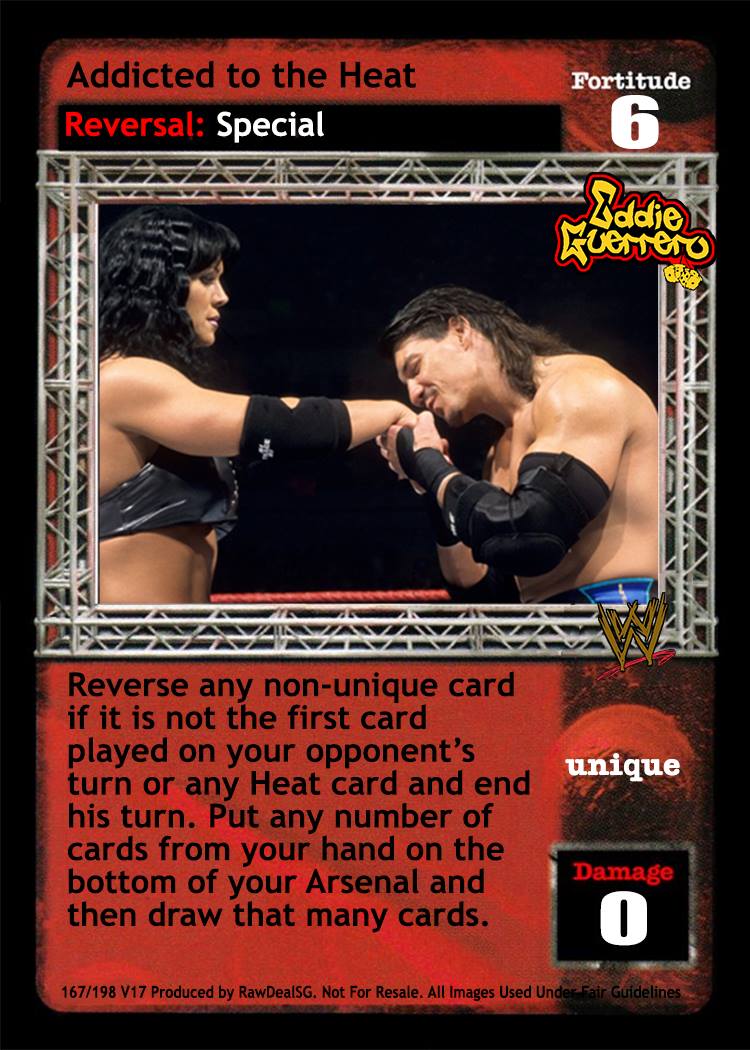 Reverse any non-unique card if it is not the first card played on your opponent's turn or any Heat card and end his turn. Put any number of cards from your hand on the bottom of your Arsenal and then draw that many cards.