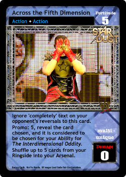 Ignore 'completely' text on your opponents reversals to this card. Promo: 5, reveal the card chosen, and it is considered to be chosen for your Ability for The Interdimensional Oddity. Shuffle up to 5 cards from your Ringside into your Arsenal.