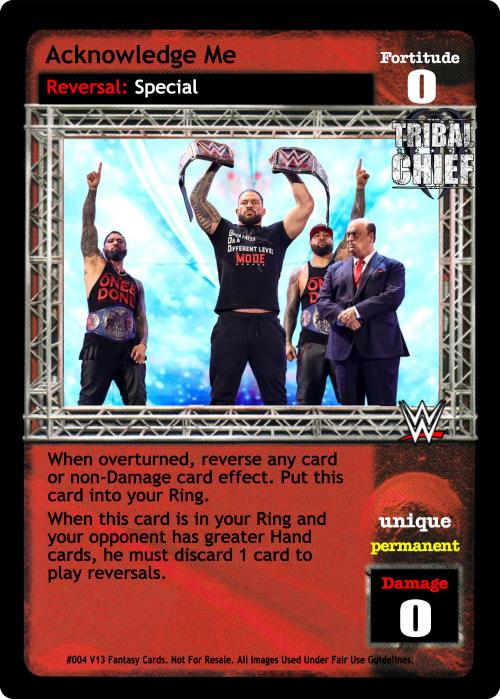 When overturned, reverse any card or non-Damage card effect. Put this card into your Ring. When this card is in your Ring and your opponent has greater Hand cards, he must discard 1 card to play reversals.