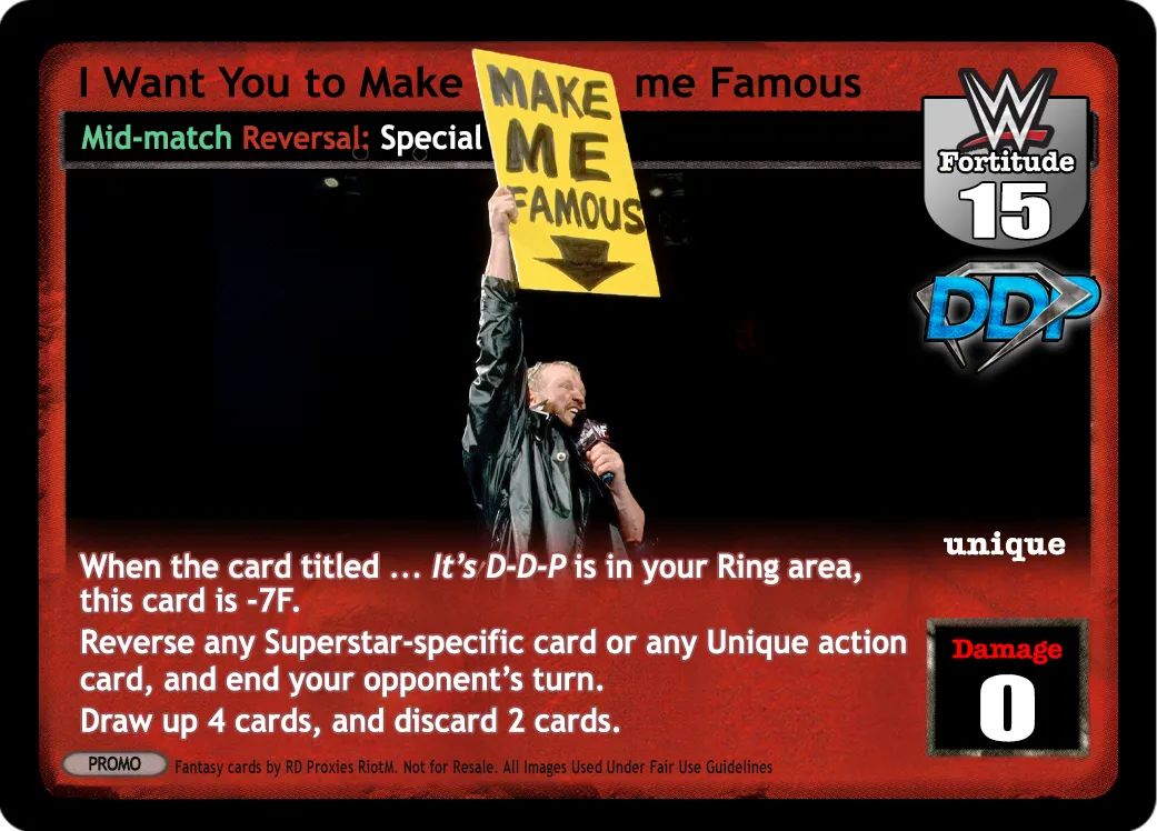 when the card title ..It's D-D-P is in your ring area, this card is -7F. reverse any superstar-specific card or any unique action card, and end your opponent's turn. draw up to 4 cards and discard 2 cards