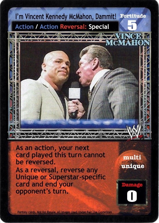 As an action, your next card played this turn cannot be reversed. As a reversal, reverse any Unique or Superstar-specific card and end your opponent's turn.