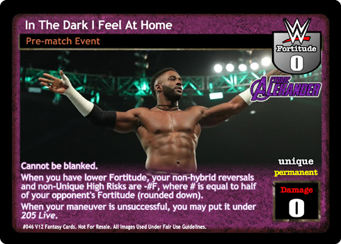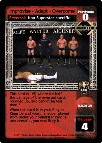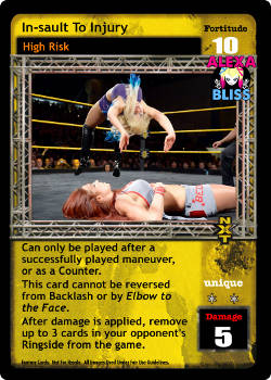 This card is +#F, where # = half the damage of the reversed card, rounded up, and cannot be less than 5. When this card is in your Ring or Ringside and your maneuver played from under your Superstar is unsuccessful, you may Bury it.
