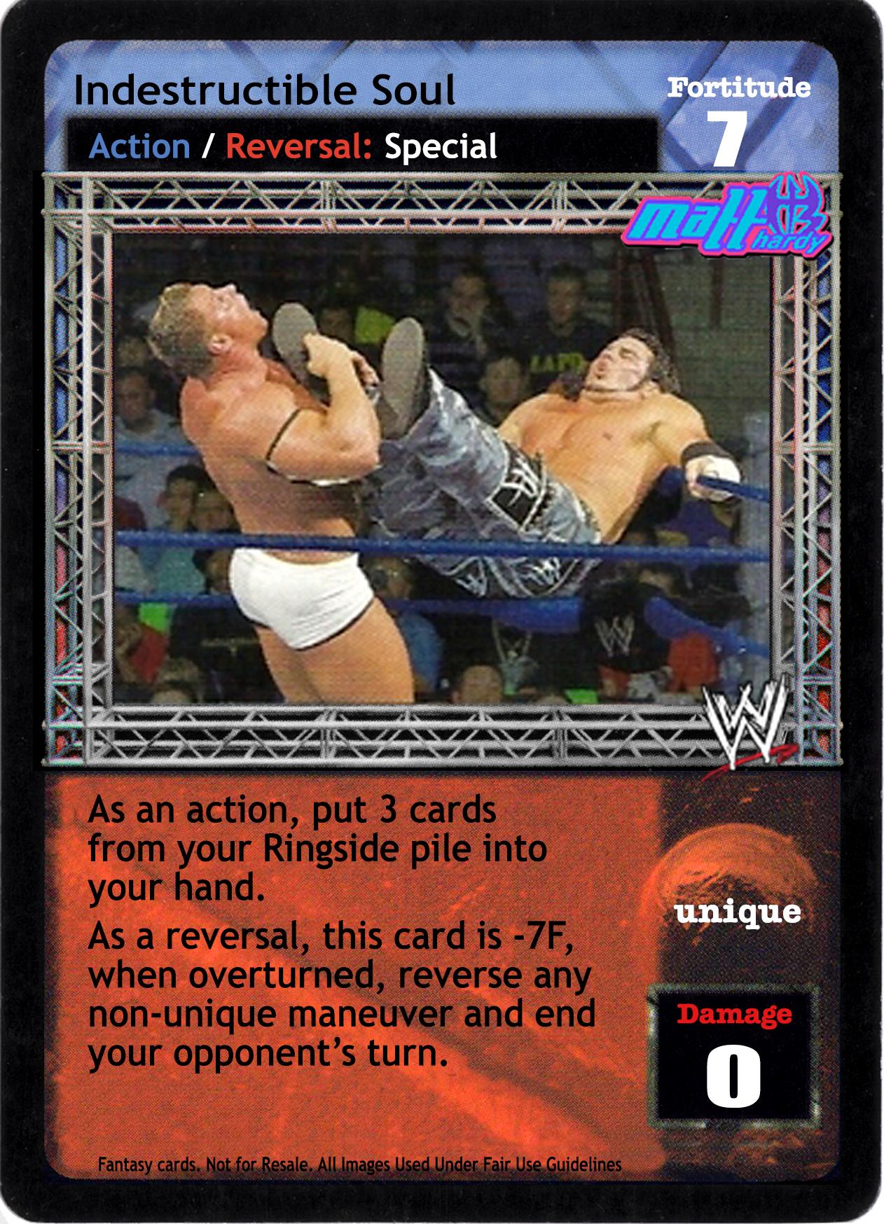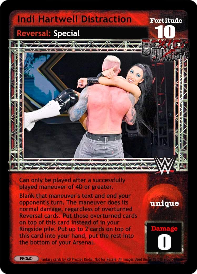 As an action, put 3 cards from your Ringside pile into your hand. As a reversal, this card is -7F, when overturned, reverse any non-unique maneuver and end your opponent's turn.