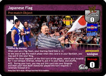 Cannot be blanked. When you are a Tag Team, your Starting Hand Size is +2. At the end of Pre-match, when this card is in your Backlash, you may put it into your Ring. Before the Draw Segment of the first turn of the game, you may search your Arsenal for 1 non-Unique reversal, reveal it, put it in your hand, and shuffle. ACE: During your turn, you may put this card into your Ringside and then your next Multi maneuver played this turn requires 3 reversals instead of 2.
