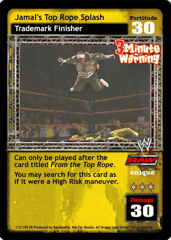 Can only be played after the card titled From the Top Rope. You may search for this card as if it were a High Risk maneuver.