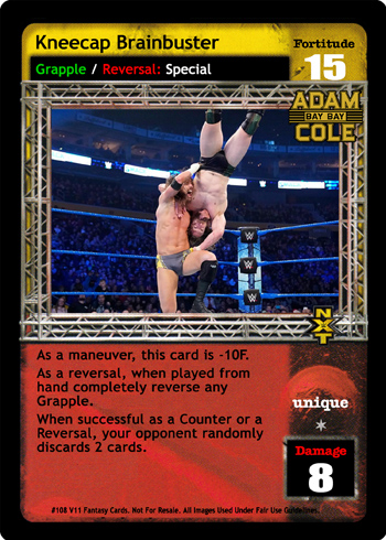As a maneuver, this card is -10F. As a reversal, when played from hand completely reverse any Grapple. When successful as a Counter or a reversal, your opponent randomly discards 2 cards.
