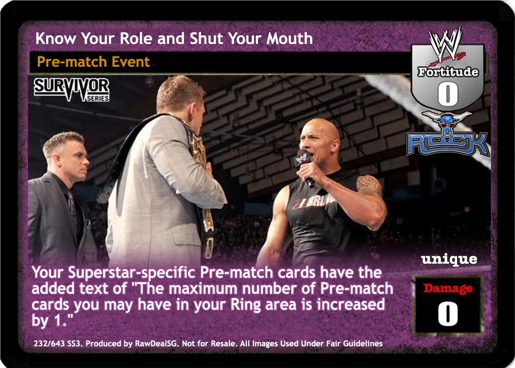 Your Superstar-specific Pre-match cards have the added text of "The maximum number of Pre-match cards you may have in your Ring area is increased by 1."