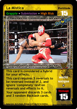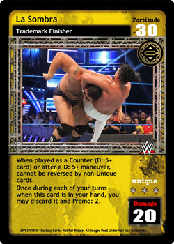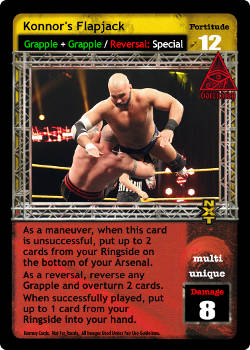 As a maneuver, when this card is unsuccessful, put up to 2 cards from your Ringside on the bottom of your Arsenal. As a reversal, reverse any Grapple and overturn 2 cards. When successfully played, put 1 card from your Ringside into your hand.