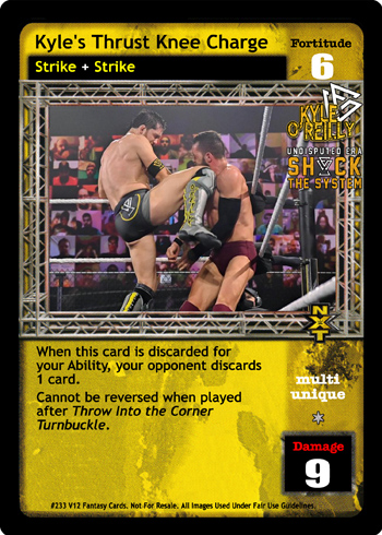 When this card is discarded for your Ability, your opponent discards 1 card. Cannot be reversed when played after Throw Into the Corner Turnbuckle.