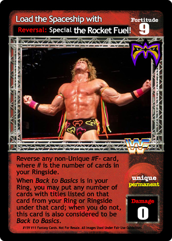 Reverse any non-Unique #F- card , where # is the number of cards in your Ringside. When Back to Basics is in your Ring, you may put any number of cards with titles listed on that card from your Ring or Ringside under that card; when you do not, this card is also considered to be Back to Basics.