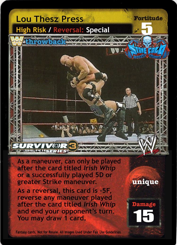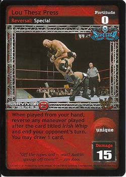 When played from your hand, reverse any maneuver played after the card titled Irish Whip and end your opponent's turn. You may draw 1 card.