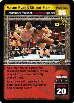 As a maneuver, cannot be reversed from Backlash when played after a successfully played card. As a reversal, reverse any Superstar-specific maneuver and discard 1 card.