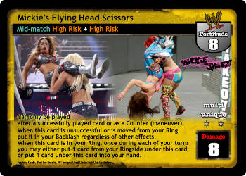 Can only be played after a successfully played card or as a Counter (maneuver). When this card is unsuccessful or is moved from your Ring, put it in your Backlash regardless of other effects. When this card is in your Ring, once during each of your turns, you may either put 1 card from your Ringside under this card, or put 1 card under this card into your hand.