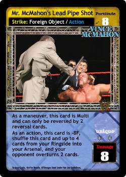 As a maneuver, this card is Multi and can only be reversed by 2 reversal cards. As an action, this card is -8F, shuffle this card and up to 4 cards from your Ringside into your Arsenal, and your opponent overturns 2 cards.