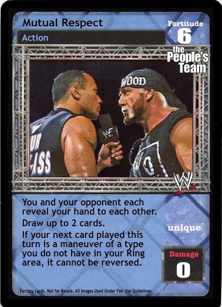 You and your opponent each reveal your hand to each other. Draw up to 2 cards. If your next card played this turn is a maneuver of a type you do not have in your Ring area, it cannot be reversed.