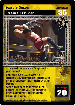 This card counts as a Grapple for your effects. Can only be played after a successfully played 5D+ maneuver or as a Counter (5D+ maneuver or Set-up). When this card is in your Ring, before each of your opponent's Draw Segments, he randomly discards 1 card.