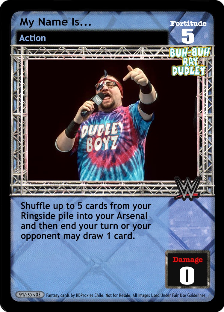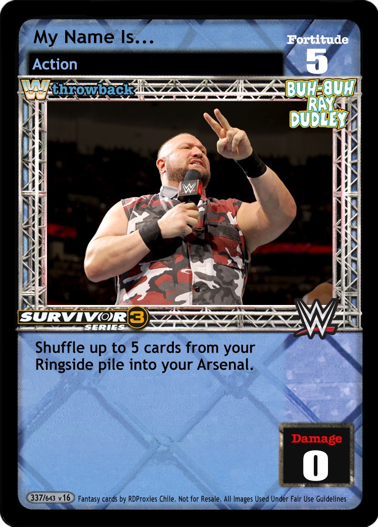 Shuffle up to 5 cards from your Ringside pile into your Arsenal.