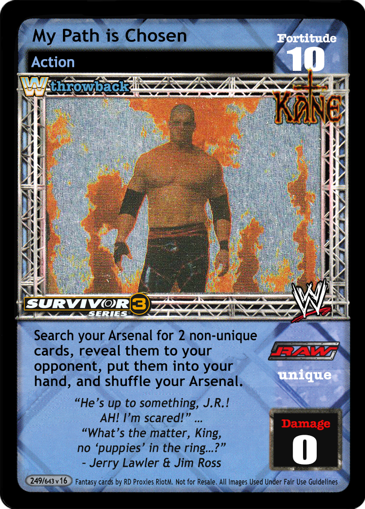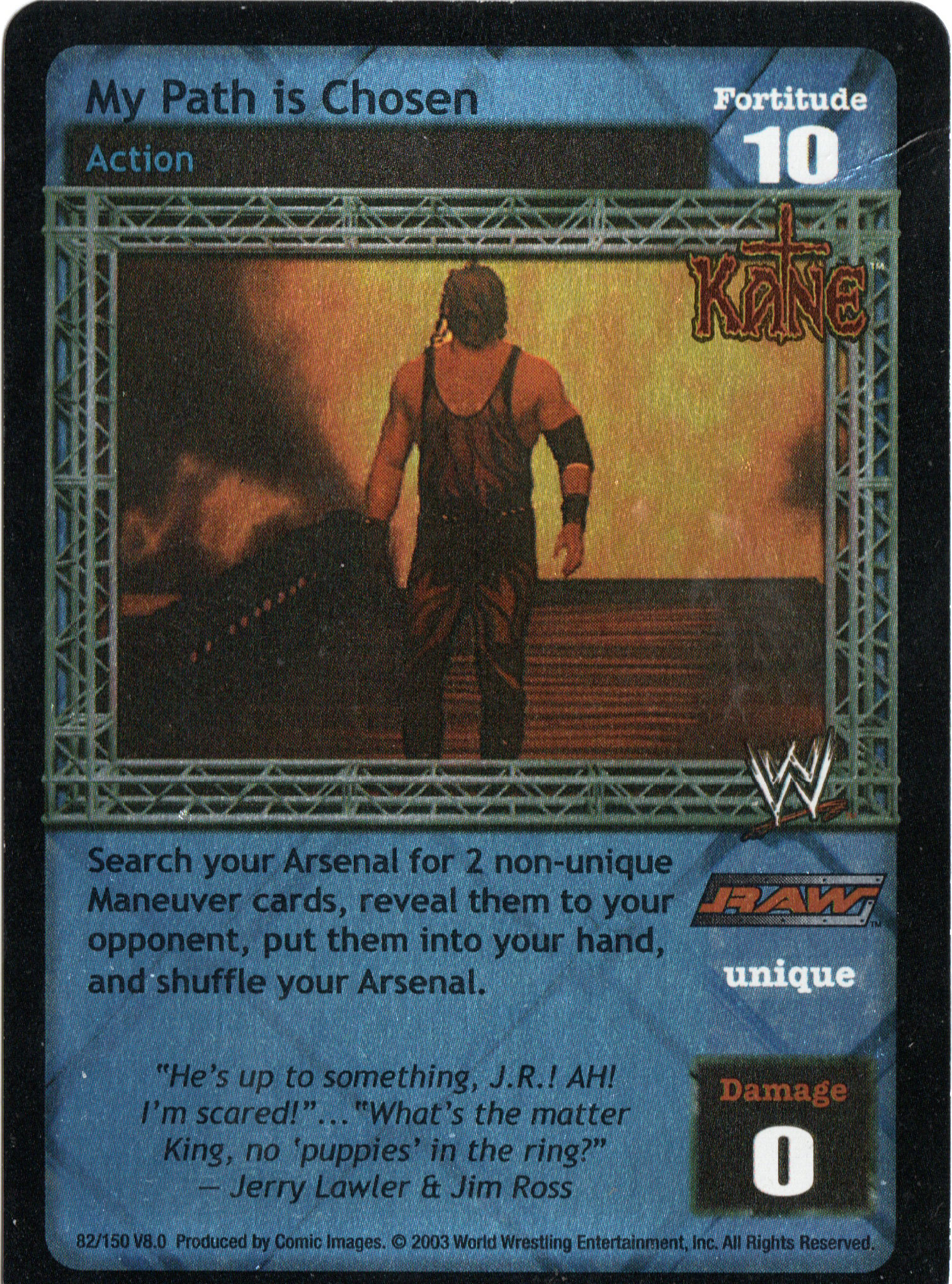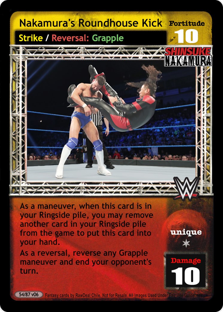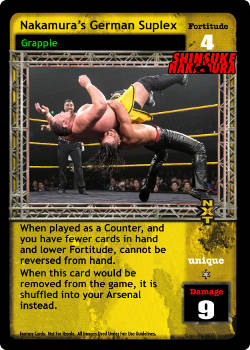 As a maneuver, when this card is in your Ringside pile, you may remove another card in your Ringside pile from the game to put this card into your hand. As a reversal, reverse any Grapple maneuver and end your opponent's turn.