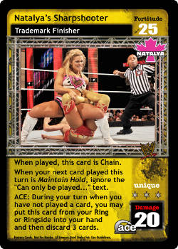 When played, this card is Chain. When your next card played this turn is Maintain Hold, ignore the 'Can only be played...' text. ACE: During your turn when you have not played a card, you may put this card from your Ring or Ringside into your hand and then discard 3 cards.