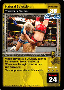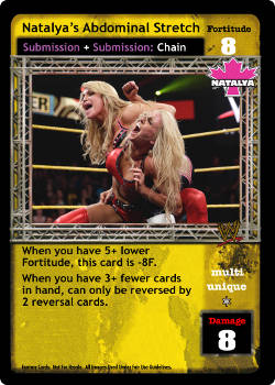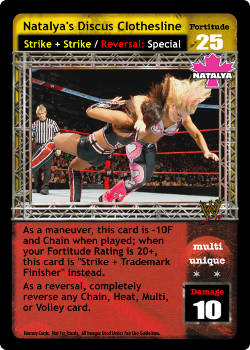 As a maneuver, this card is -10F and Chain when played; when your Fortitude Rating is 20+, this card is 'Strike + Trademark Finisher' instead. As a reversal, completely reverse any Chain, Heat, Multi, or Volley card.