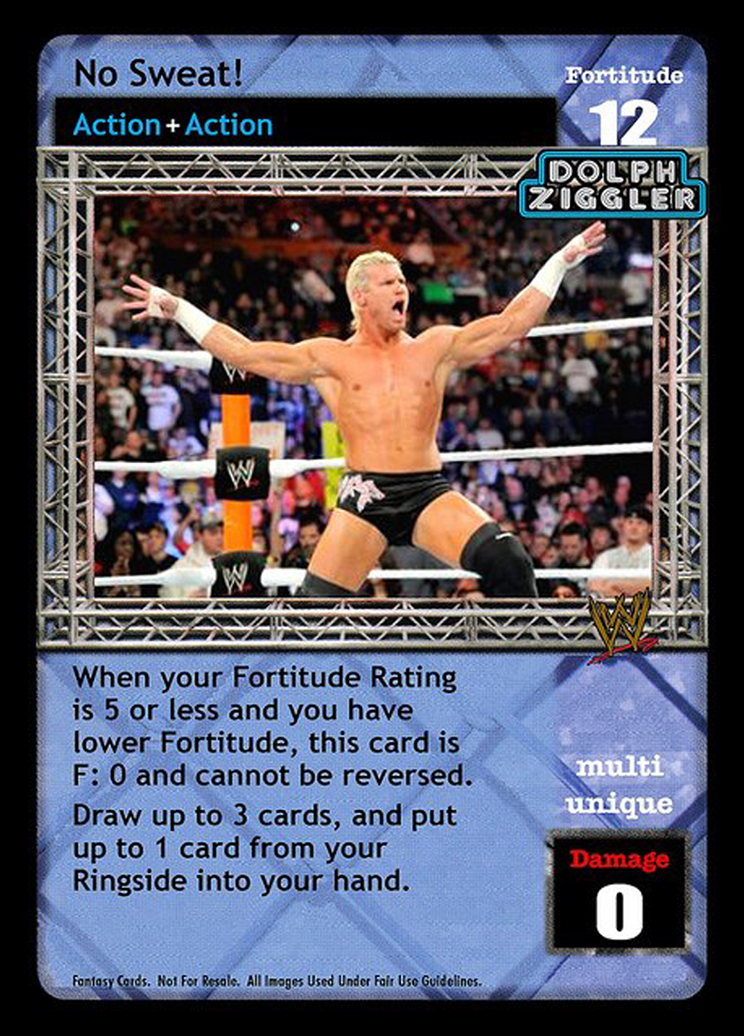 When your Fortitude Rating is 5 or less and you have lower Fortitude, this card is F: 0 and cannot be reversed. Draw up to 3 cards, and put up to 1 card from your Ringside into your hand.