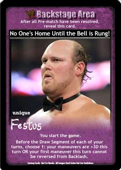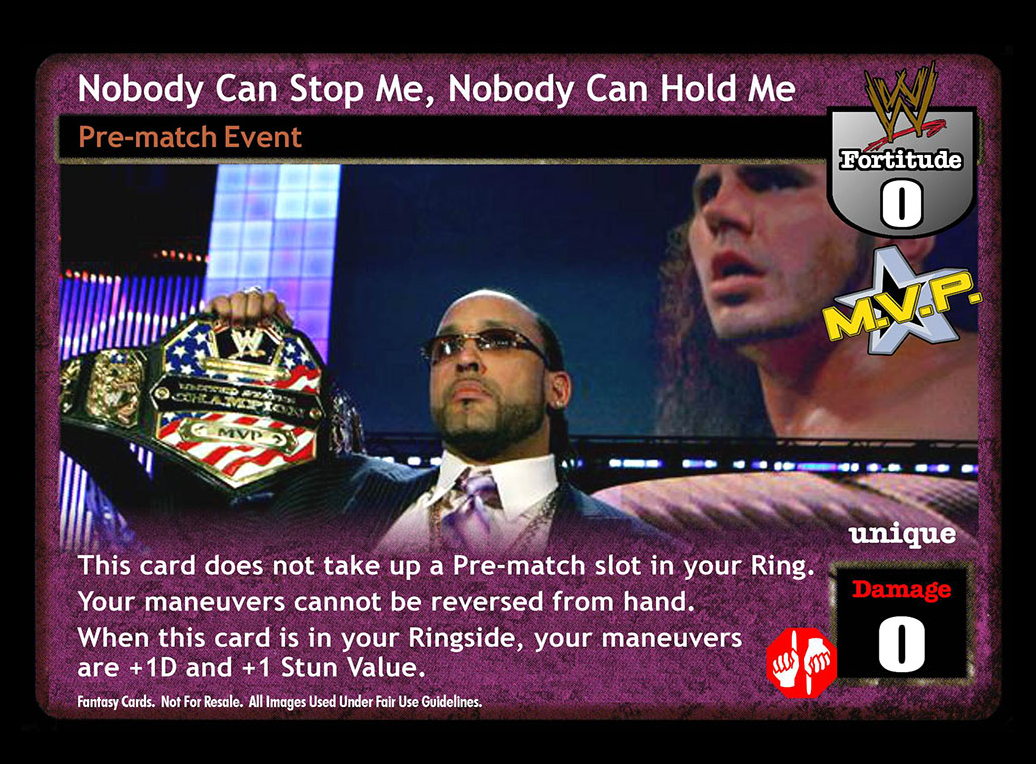 This card does not take up a Pre-match slot in your Ring. Your maneuvers cannot be reversed from hand. When this card is in your Ringside, your maneuvers are +1D and +1 Stun Value.