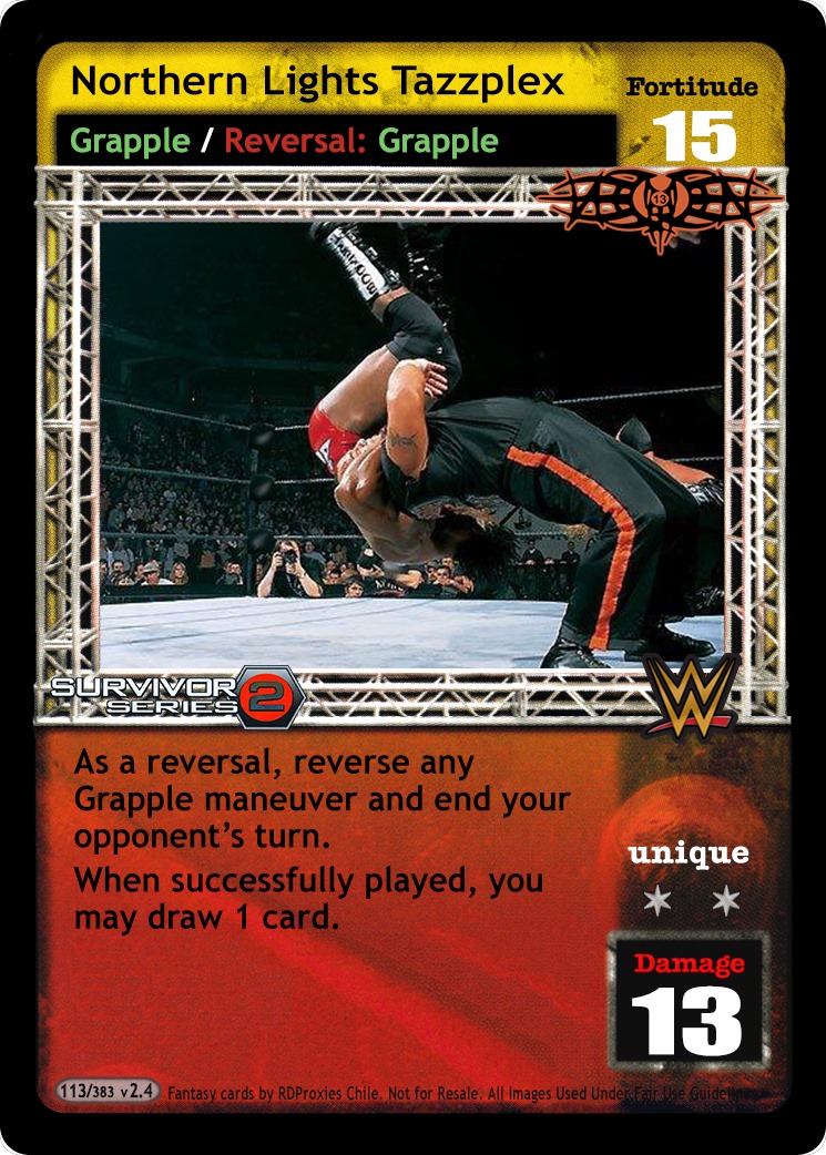 As a reversal, reverse any Grapple maneuver and end your opponent's turn. When successfully played, you may draw 1 card.