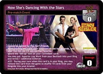 Cannot be packed by The Hurri-Friends. When packing this card, your Enforcers do not have brands, and your Too Hot for TV cards are not Fan Favorite. Ignore the 'Set-up' text on your Cartwheel cards. You may put Superior Leg Work from your Backlash into your Ring and reveal 1 additional Enforcer. ACE: During your turn when this card is in your Ring, you may remove this card from the game to shuffle 10 cards from your Ringside into your Arsenal.