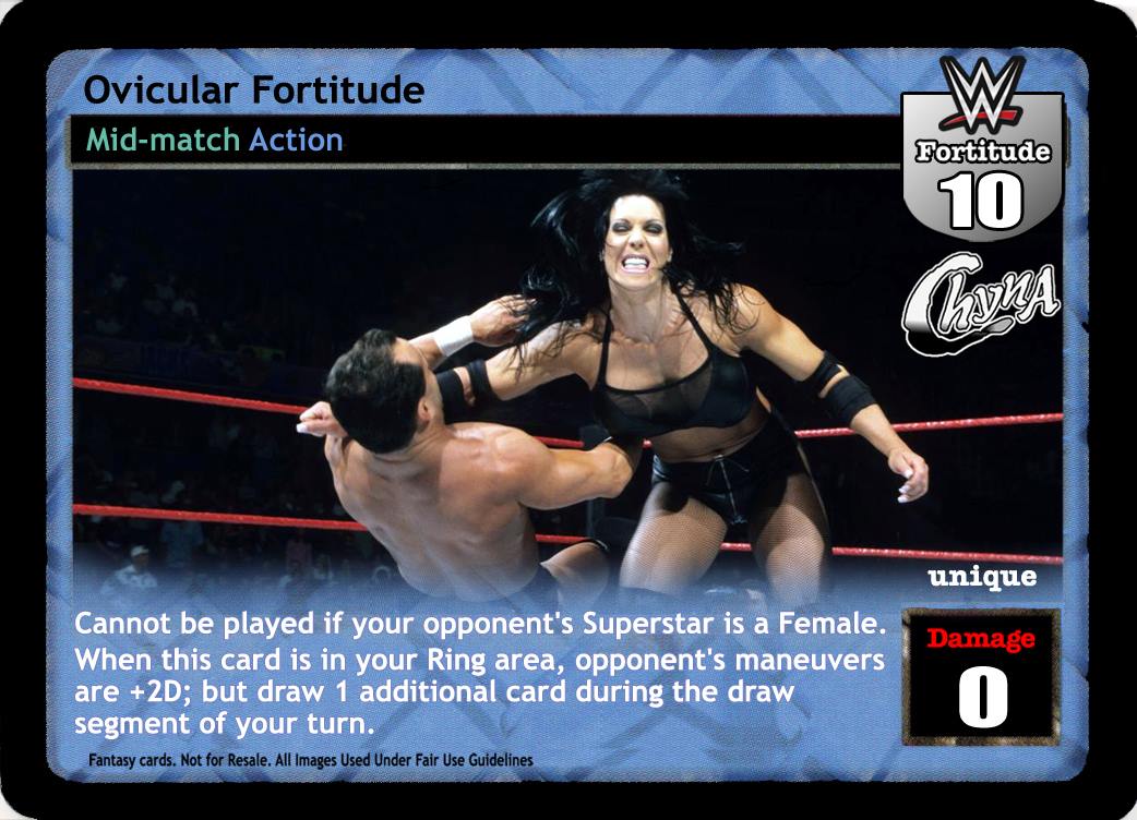 Cannot be played if your opponent's Superstar is a female. When this card is in your Ring area, opponent's maneuvers are +2D; but draw 1 additional card during the draw segment of your turn.