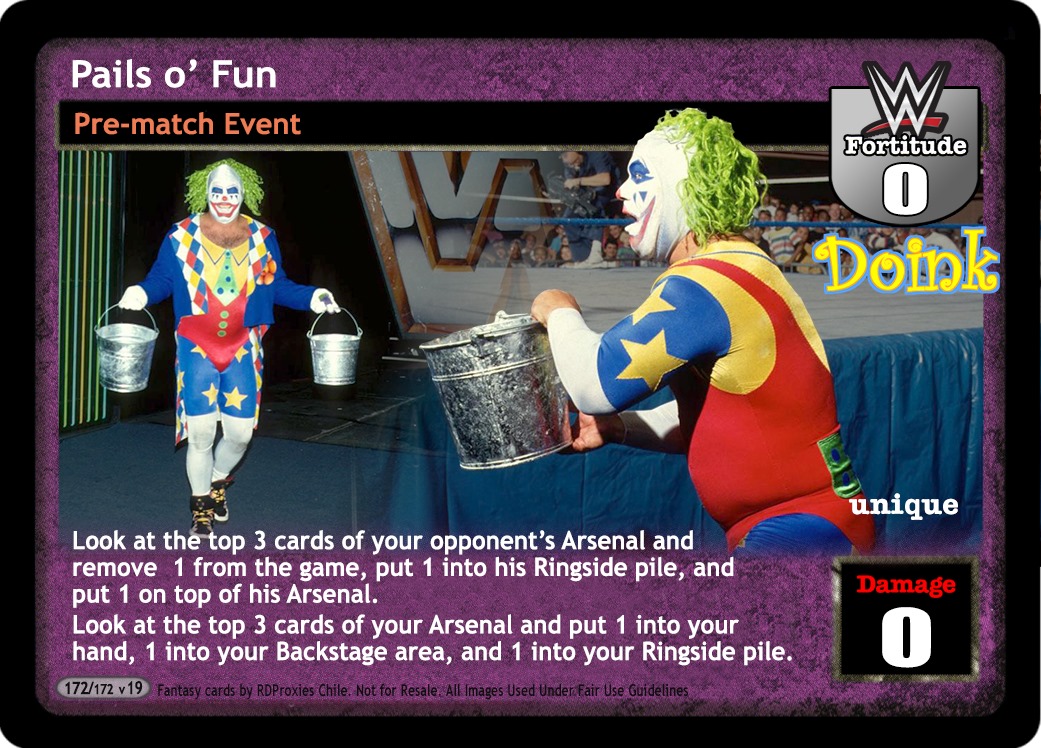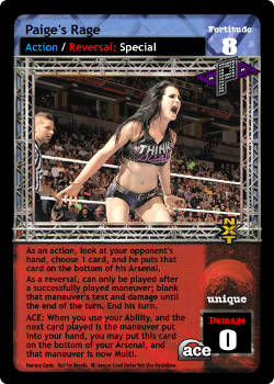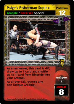 As a maneuver, this card is -8F, draw up to 1 card and shuffle up to 1 card from Ringside into your Arsenal. As a reversal, reverse any non-Unique Grapple.