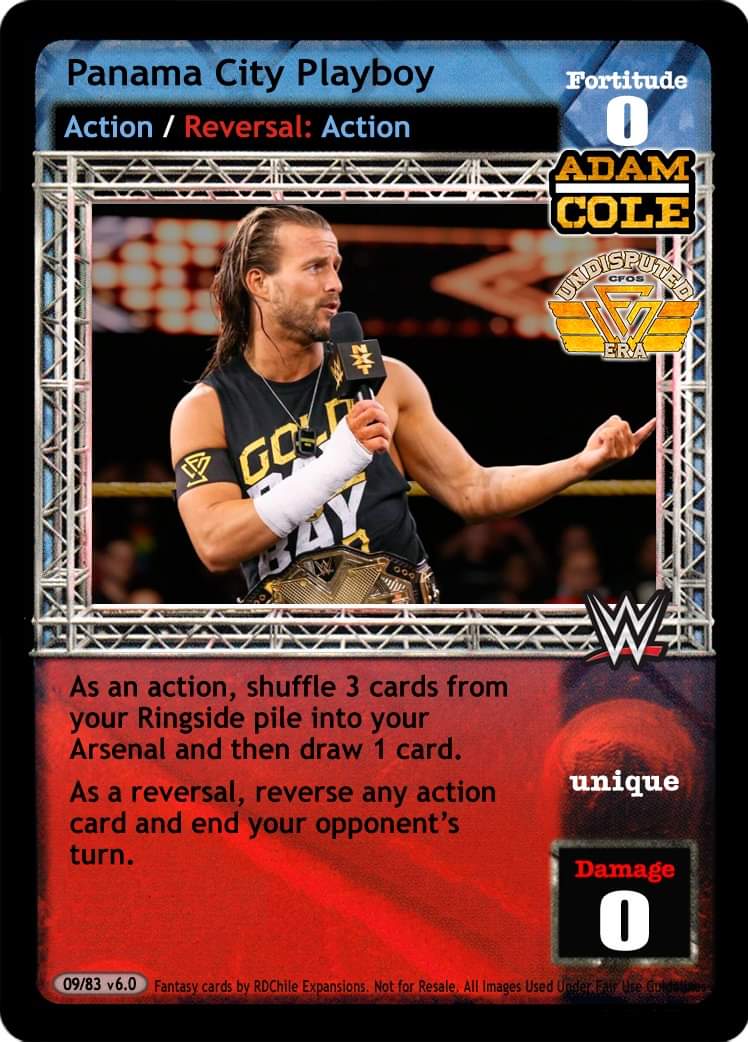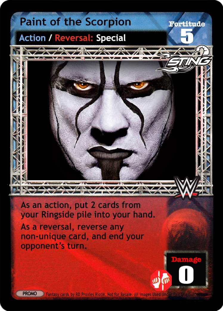 As an action, shuffle 3 cards from your ringside pile into your arsenal and then draw 1 card. As a reversal, reverse any action card and end your opponent`s turn.