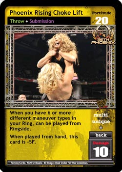 When you have 6 or more different maneuver types in your Ring, can be played from Ringside. When played from hand, this card is -5F.