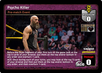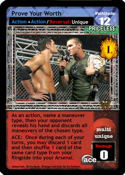 As an action, name a maneuver type, then your opponent reveals his hand and discards all maneuvers of the chosen type. ACE: Once during each of your turns, you may discard 1 card and then shuffle 1 card of the same card type from your Ringside into your Arsenal.