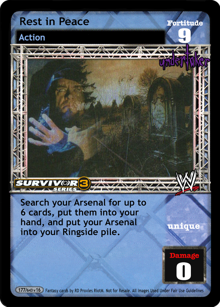 Search your Arsenal for up to 6 cards, put them into your hand, and put your Arsenal into your Ringside pile.