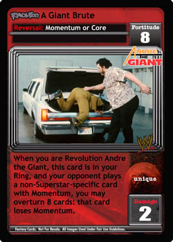 When you are Revolution Andre the Giant, this card is in your Ring, and your opponent plays a non-Superstar-specific card with Momentum, you may overturn 8 cards: that card loses Momentum.