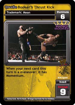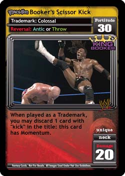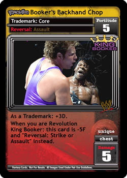 As a Trademark: +3D. When you are Revolution King Booker: this card is -5F and 'Reversal: Strike or Assault' instead.