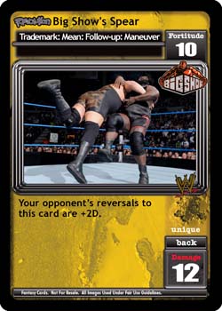 This card is -1F for each reversal in your opponent's Ring. When this card is in your Ring, your maneuvers and Superstar-specific cards are -5F.