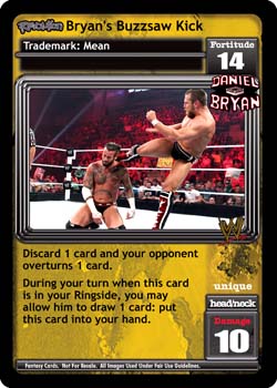 Discard 1 card and your opponent overturns 1 card. During your turn when this card is in your Ringside, you may allow him to draw 1 card: put this card into your hand.