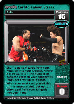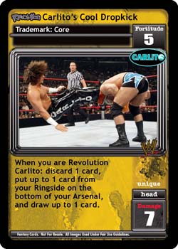 When you are Revolution Carlito: discard 1 card, put up to 1 card from your Ringside on the bottom of your Arsenal, and draw up to 1 card.