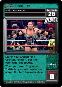 Search your Arsenal for 1 Colossal, reveal it, put it in your hand, and shuffle. When you have 10+ greater Fortitude: your next maneuver played this turn has Momentum.