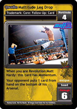 When you are Revolution Matt Hardy: this card has Momentum. Your opponent puts 1 card from hand on the bottom of his Arsenal.