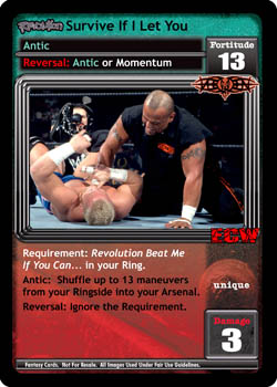 Requirement: Revolution Beat Me If You Can... in your Ring. Antic: Shuffle up to 13 maneuvers from your Ringside into your Arsenal. Reversal: Ignore the Requirement.