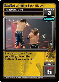 Put up to 1 card from your Ringside on the bottom of your Arsenal.