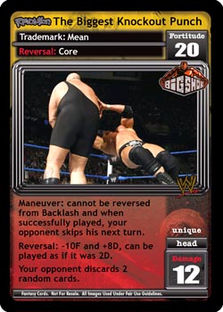 Maneuver: cannot be reversed from Backlash and when successfully played, your opponent skips his next turn. Reversal: -10F and +8D, can be played as if it was 2D. Your opponent discards 2 random cards.