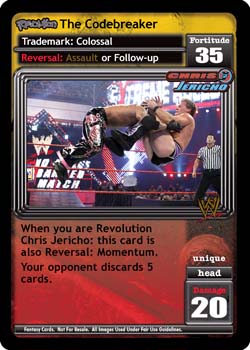 When you are Revolution Chris Jericho: this card is also Reversal: Momentum. Your opponent discards 5 cards.
