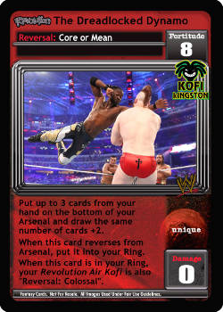 Put up to 3 cards from your hand on the bottom of your Arsenal and draw the same number of cards +2. When this card reverses from Arsenal, put it into your Ring. When this card is in your Ring, your Revolution Air Kofi is also 'Reversal: Colossal'.