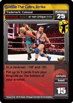 As a reversal: -10F and -5D. Put up to 9 cards from your Ringside on the bottom of your Arsenal.