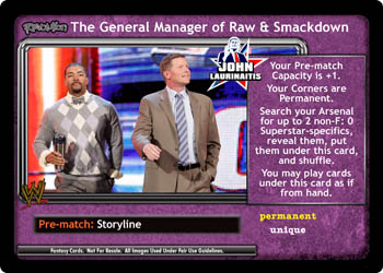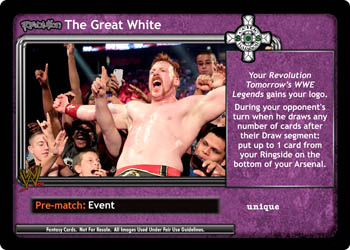Your Revolution Tomorrow's WWE Legends gains your logo. During your opponent's turn when he draws any number of cards after their Draw segment: put up to 1 card from your Ringside on the bottom of your Arsenal.